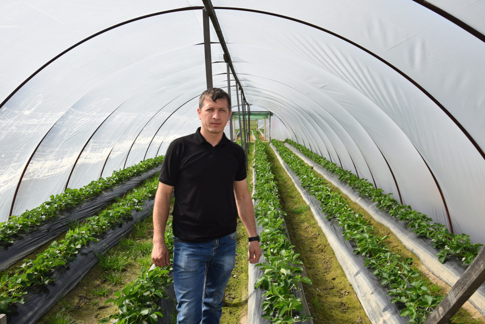 Для руководителя крестьянско-фермерского хозяйства Владимира Терентьева, который, выращивает клубнику более шести лет, такая поддержка своевременна. Молодой предприниматель работал на арендованной земле, а в этом году на приобретенной в собственность земле поставил 86 новых теплиц. В данное время на территории хозяйства ведутся работы по отсыпке грунта дорожного полотна, чтобы был удобный подъезд техники к теплицам, отводу воды и по насыпи низких участков земли. В теплицах подведена оросительная система, посадочный материал клубники подкормлен, обработан и уже дает цвет.