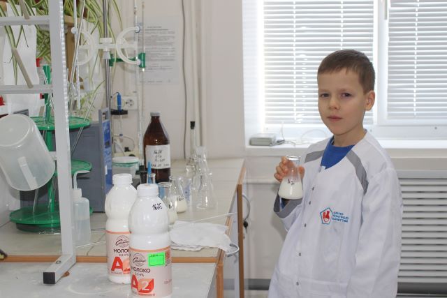 Усть-лабинский первоклассник Владимир Щербина участвует в популярном муниципальном конкурсе исследовательских работ и творческих проектов младших школьников «Я – исследователь». Совсем скоро ему предстоит выступить перед судьями конкурса и рассказать, почему киснет молоко. Чтобы лучше разобраться в теме и увидеть на практике, как определяют кислотность молока, мальчик побывал в Центре контроля качества компании «Прогресс Агро». Здесь ему помогли подготовиться к испытанию и даже дали возможность поучаствовать в проведении анализа.