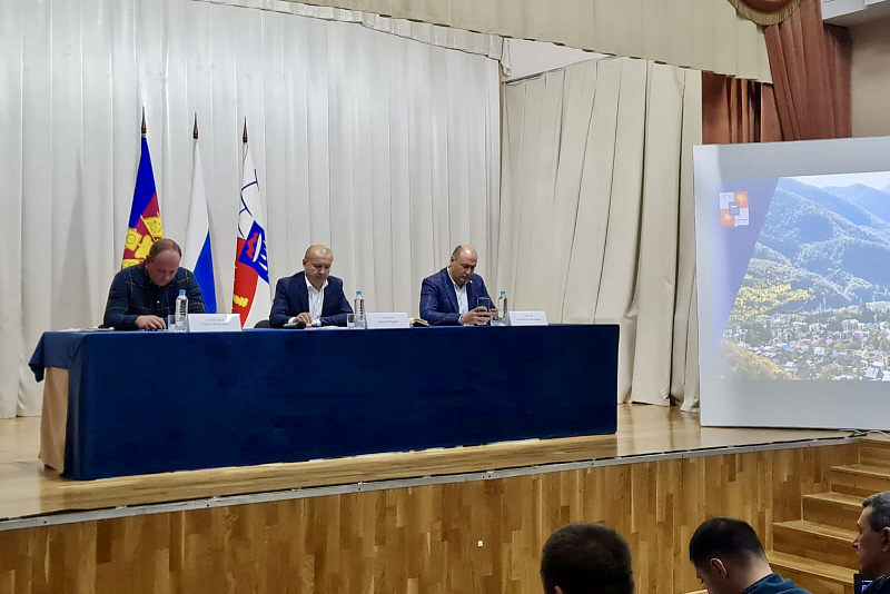 Встречу с жителями поселка Красная Поляна по поручению мэра Сочи провел глава Адлерского района Дмитрий Сбитнев, в ней также участвовали депутаты Городского Собрания Сочи по избирательному округу №3 «Горный» Александр Жигалко и Константин Сыпало.