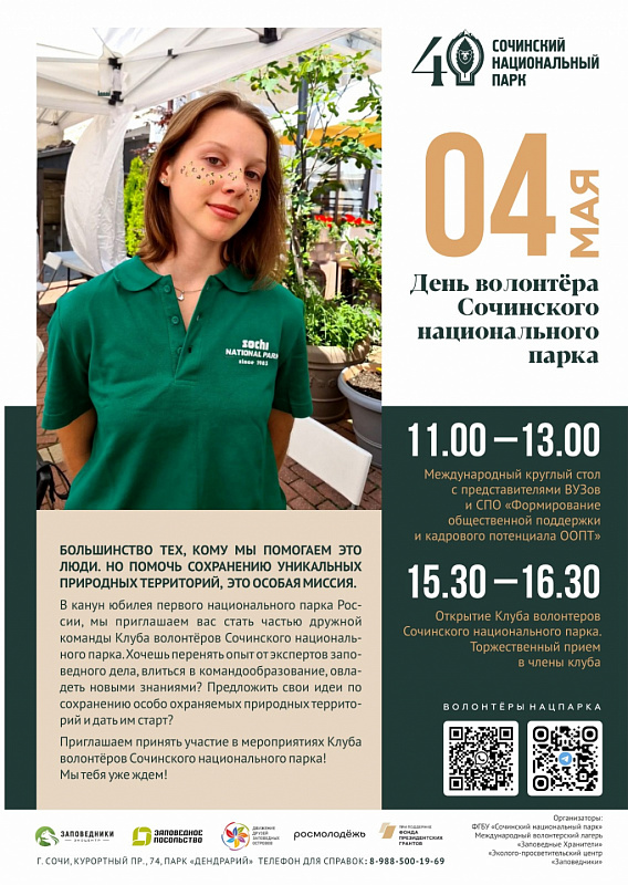 Поздравить с 40-летним юбилеем, помочь в подготовке праздничных мероприятий, поделиться уникальным опытом добровольчества на особо охраняемых природных территориях: так увидели совместную миссию партнёры Сочинского национального парка, проект «Заповедные хранители», которые проводят с 1 по 6 мая в Сочи международный эковолонтёрский лагерь. Участниками лагеря стали студенты из 6 стран.
