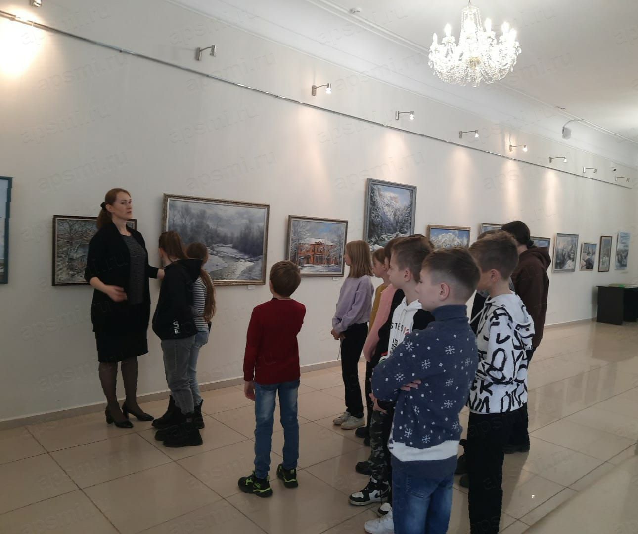 В сопровождении своего классного руководителя они посетили районную выставку изобразительного и декоративно-прикладного искусства «Зимние узоры», которая проводится в Апшеронской детской художественной школе. Здесь педагог рассказала ребятам о представленных на выставке картинах, в каких техниках выполнены эти прекрасные зимние сюжеты. Также дети увидели вышивки творческого объединения «Рукодельница».