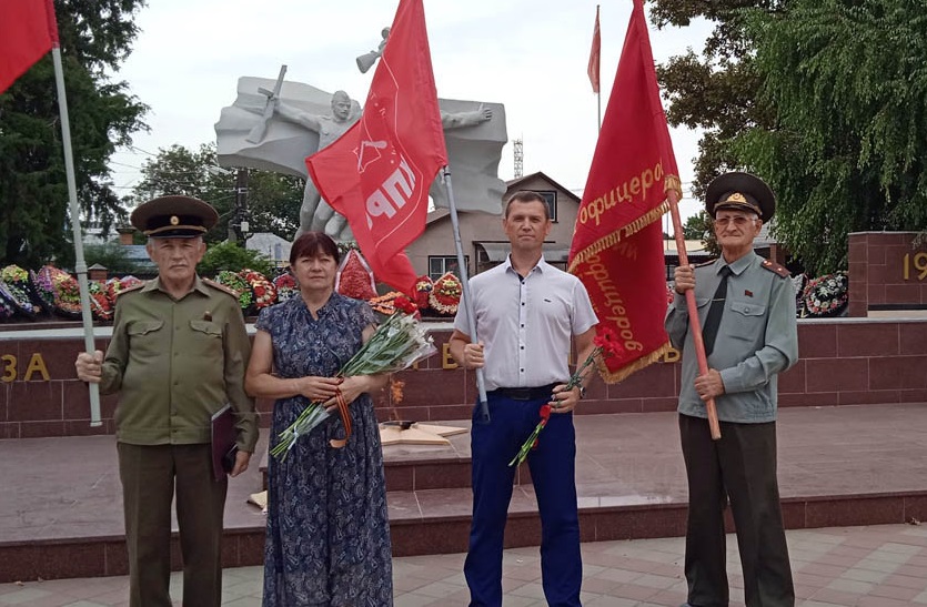 Так, в Усть-Лабинске коммунисты вместе с активистами Союза Советских офицеров возложили цветы к мемориалу Вечного огня.