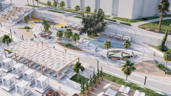 Его благоустройство включает создание на пляжной территории теневых аэрариев и различных тематических зон для отдыха гостей пляжа, в том числе для семей с детьми. Также будут реализованы зоны с мягким покрытием для игр со скакалкой, установлено специализированное оборудование для игры в текболл и настольный теннис и организована работа полномасштабной анимационной службы с ежедневным графиком мероприятий и активности для детей и взрослых. Здесь также появятся водные аттракционы, малые архитектурные формы. Значительное пространство будет отдано озеленению субтропическими культурами.