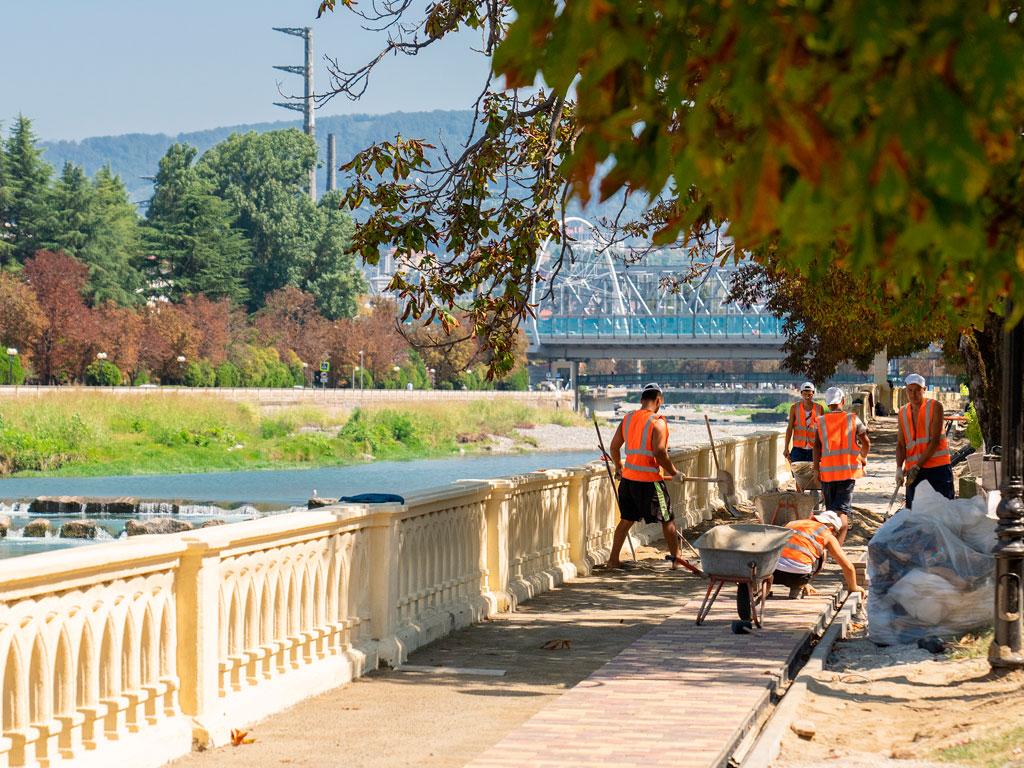 Работы ведутся на участке набережной реки Сочи протяженностью 5,5 километров, который соединяет жилой квартал на улице Конституции с новым строящимся пешеходным мостом в районе парка «Ривьера».