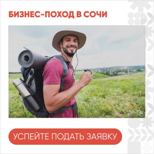 С 22 по 24 сентября в г. Сочи, п. Солохаул пройдёт «Мой бизнес поход «Энергия Бизнеса» для предпринимателей Краснодарского края.