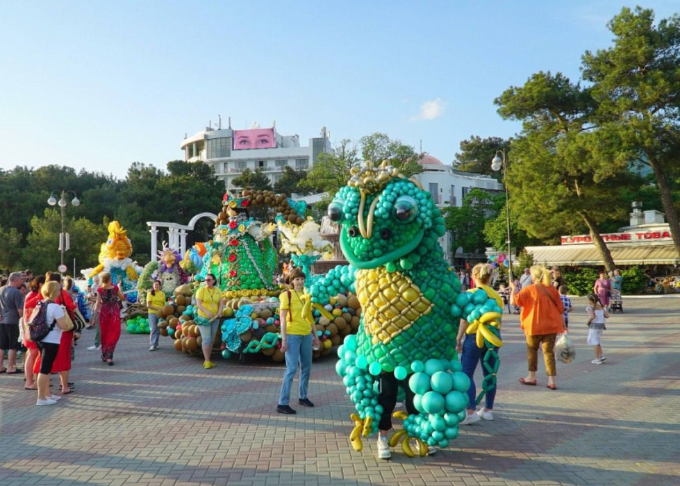 В этом году для участия в «Море шаров», в Геленджик приехали 13 команд. Несколько дней они изготавливали огромные композиции из шаров. Все «поделки» разные, но объединила их общая тема – сказки.