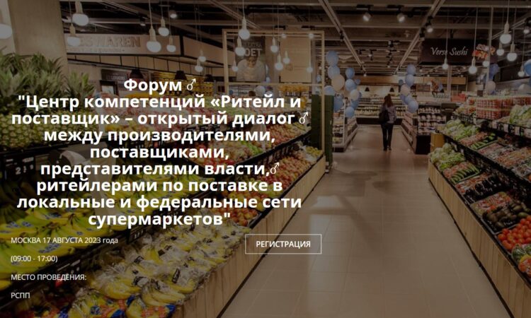 17 августа 2023 г. (г. Москва, Котельническая наб., д. 17, Российский Союз промышленников и предпринимателей (РСПП) состоится Международный Форум «Центр компетенций «Ритейл и поставщик» (далее -Форум).