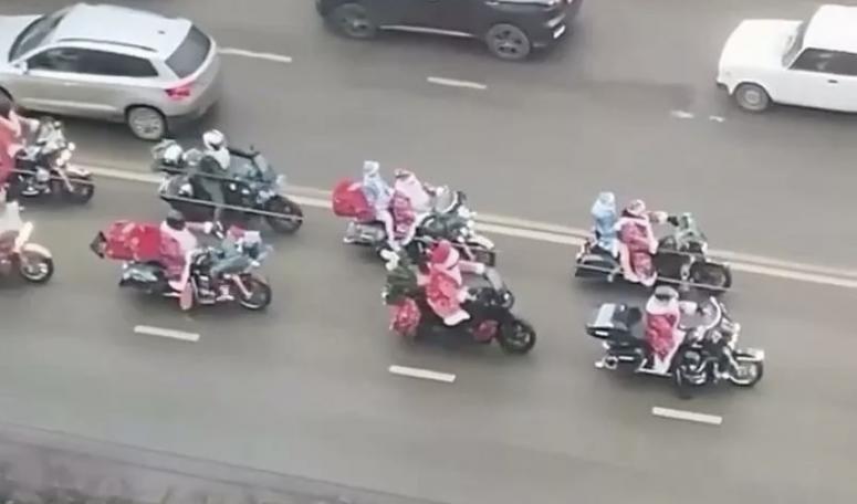 Мотопарад Дедов Морозов и Снегурочек прошел в Краснодаре