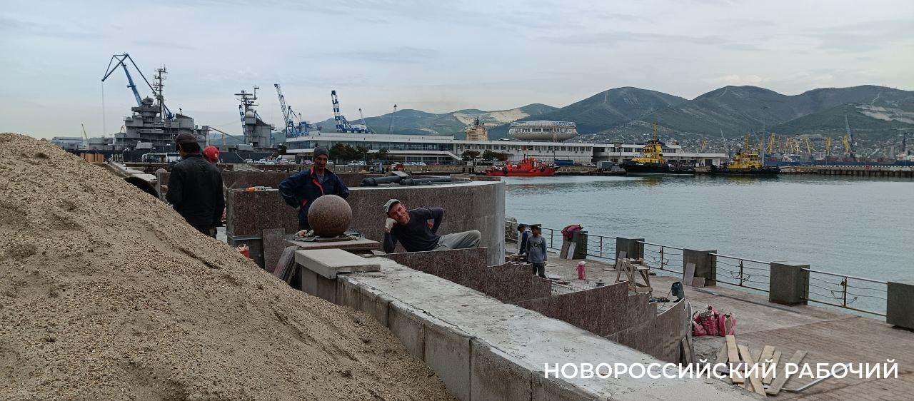 Рабочие спешат, стараются успеть к праздничным выходным, когда набережная примет на себя «основной удар» отдыхающих-гуляющих.
