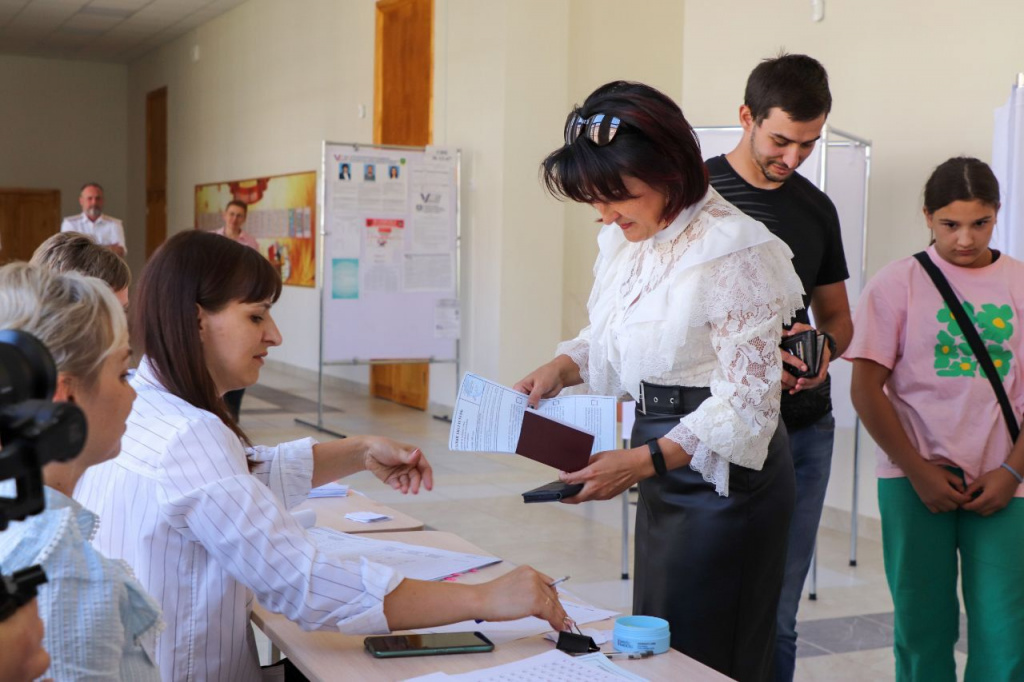 На избирательном участке № 12-47 вместе с большой дружной семьей проголосовала глава Нововеличковского сельского поселения Галина Михайловна Кова.