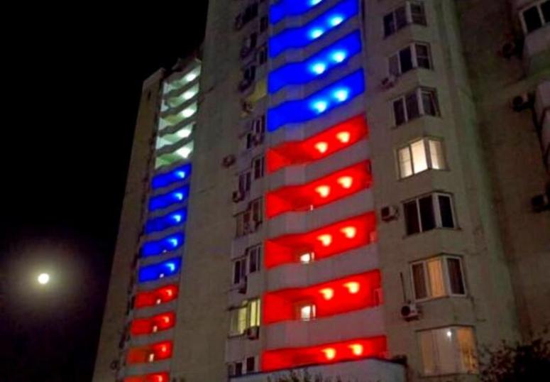 Новороссийцы заволновались, что «патриотическая» подсветка одного из домов может привлечь дроны