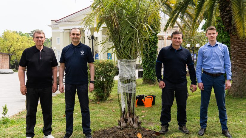 Виктор Филонов вместе с заместителем руководителя Минстроя России Алексеем Ересько и сотрудниками администрации города высадили пальмы в парке им.Фрунзе