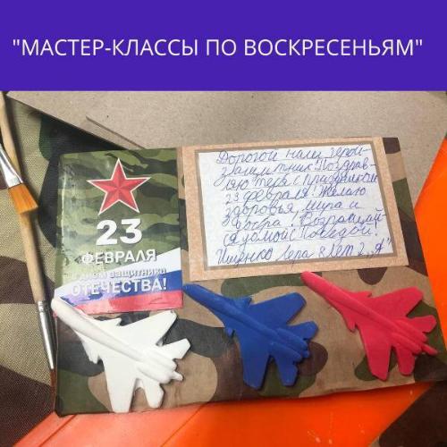 Напишите письмо солдатам, сделайте своими руками сувенир или подарок для воинов СВО, а еще – примите участие в плетении маскировочных нашлемников и накидок на рюкзак под руководством волонтера движения «Пламя Победы» Елены Литвиновой.