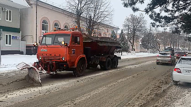 Снегоуборочная техника вторые сутки расчищает улицы Кавказского района