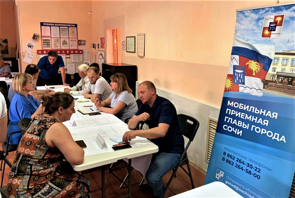 По поручению мэра Сочи Алексея Копайгородского выездные приемы специалистов в удаленные от центра города микрорайоны и населенные пункты в сельской черте осуществляются еженедельно.