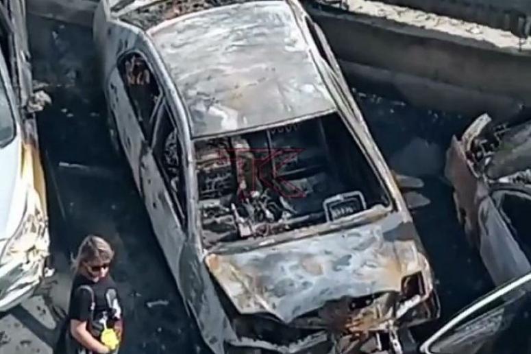 В Краснодаре на парковке жилого комплекса сгорели три автомобиля