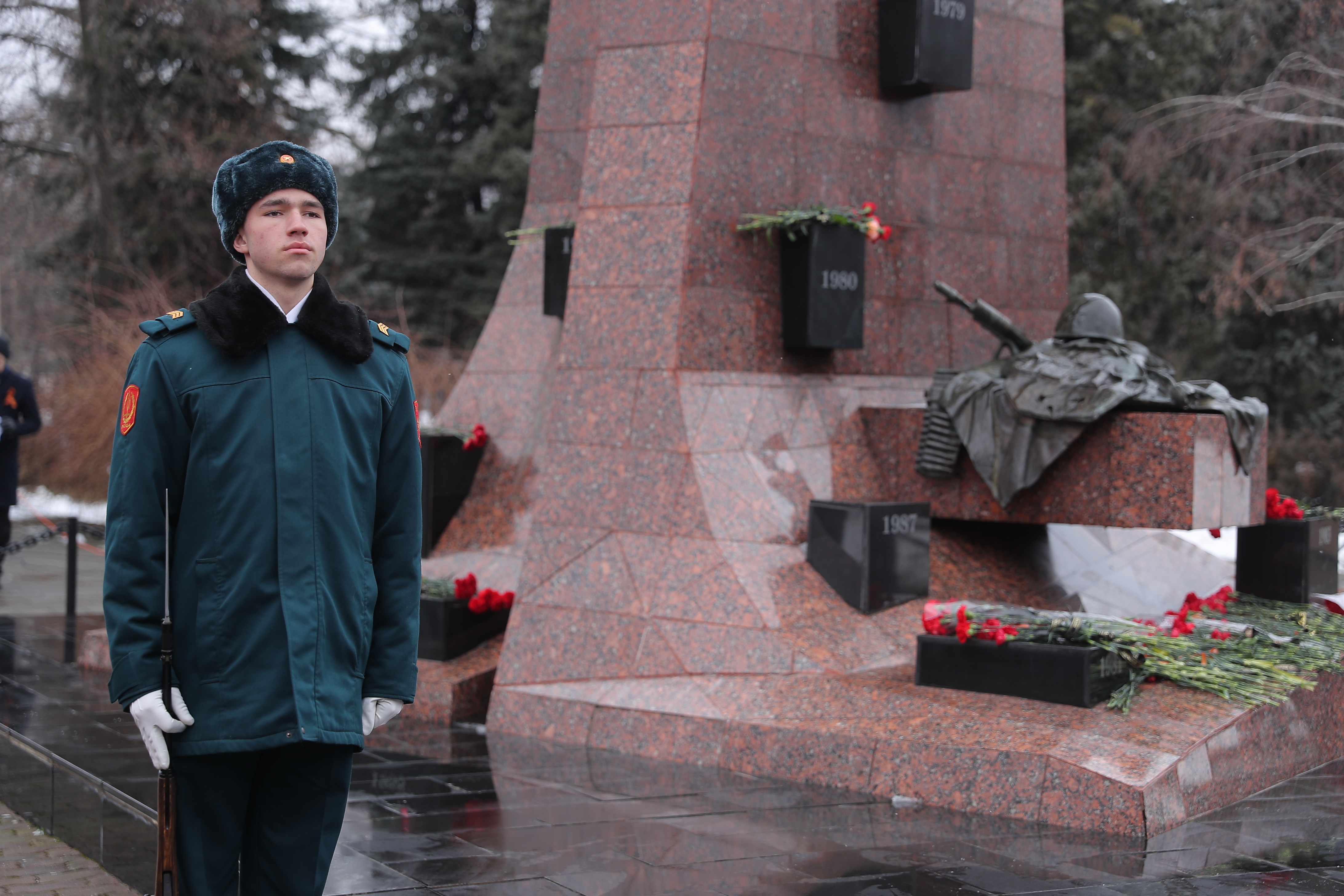 В Чистяковской Роще возложили цветы к памятнику «Сынам Кубани, павшим в Афганистане» во время памятного мероприятия, посвящённого Дню памяти о россиянах, исполнявших служебный долг за пределами Отечества.