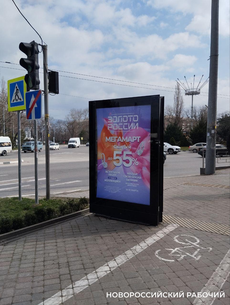 В Новороссийске рекламный баннер встал на пути пешеходов