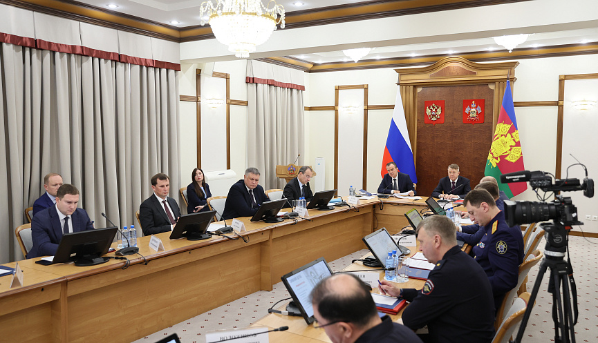 Участие в совещании также приняли прокурор Краснодарского края Сергей Табельский, руководитель СУ СК РФ по региону Андрей Маслов, председатель Законодательного Собрания Юрий Бурлачко, врио начальника ГУ МВД России по краю Сергей Воложинов, главный федеральный инспектор по краю Евгений Гулиев.