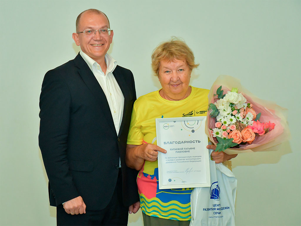 Торжественное вручение грамот от Ассоциации волонтерских центров состоялось в рамках круглого стола «О деятельности регионального центра «серебряного» волонтерства города Сочи «Молоды душой», приуроченного ко Дню пожилых людей. На заседании обсудили деятельность центра, внедрение конкурса на лучшую волонтерскую группу.
