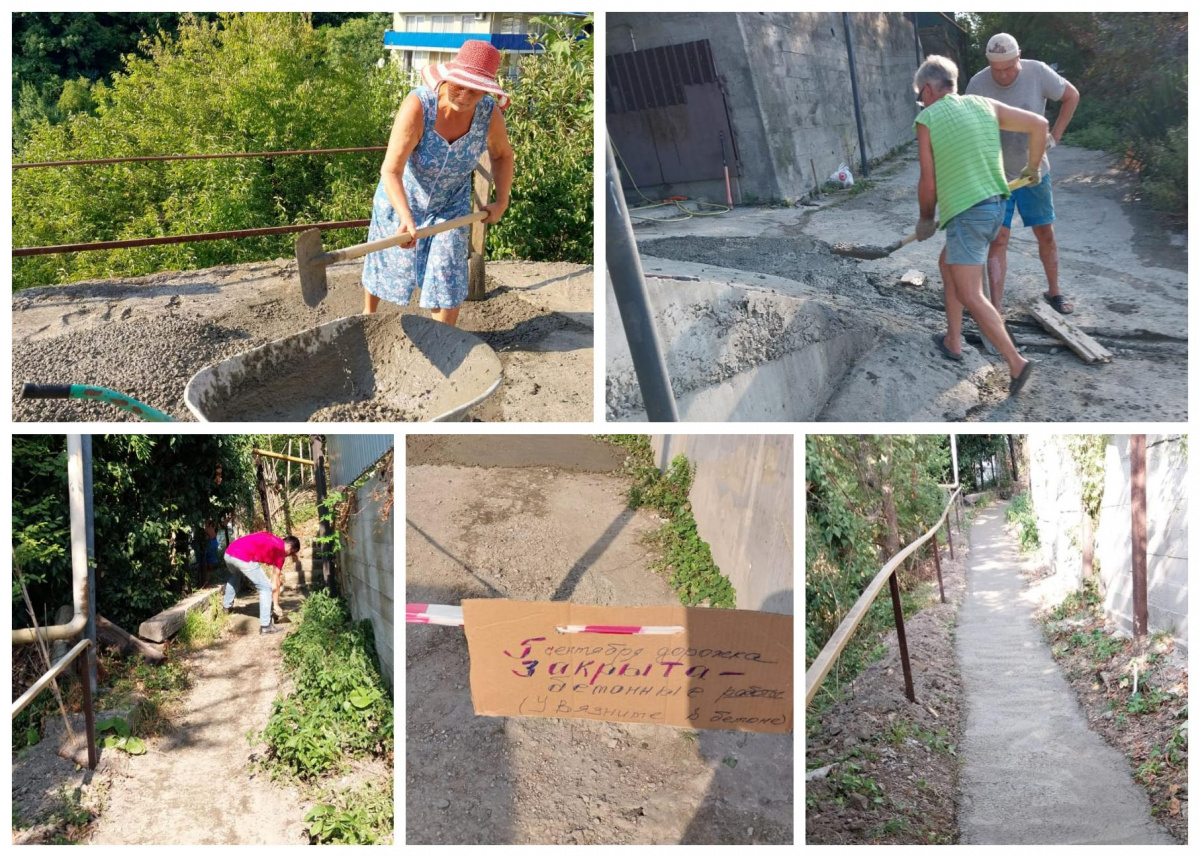 - Мы обратились к председателю Совета города Туапсе Владимиру Стародубцеву с просьбой выделить нам 5 кубов бетона, чтобы привести в порядок каменистую и неудобную для ходьбы тропу. Наша просьба была услышана, накануне нам доставили бетон, и жители ТОС уложили его, - рассказала председатель ТОС №67 Валентина Бессарабова. - Отлично потрудились Григорий Французов, Геннадий Торопенко, Павел Цуркан, Владимир Силаков. Кроме заливки тропы, они подготовили для ремонта участок дороги.