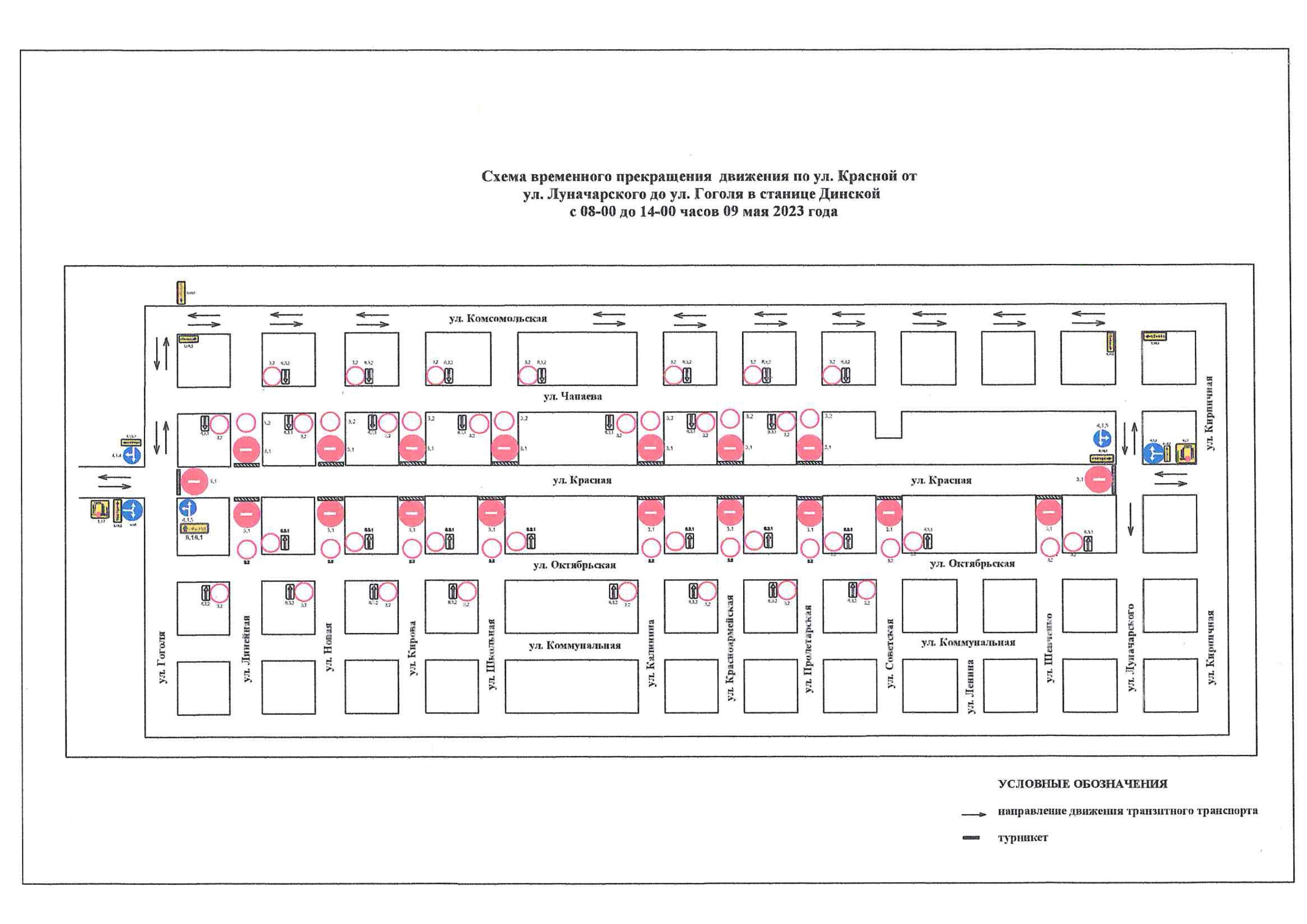 ВНИМАНИЕ! ИЗМЕНЕНИЕ ДВИЖЕНИЯ НА 9 и 27 мая 2023 года по улице Красной в станице Динской