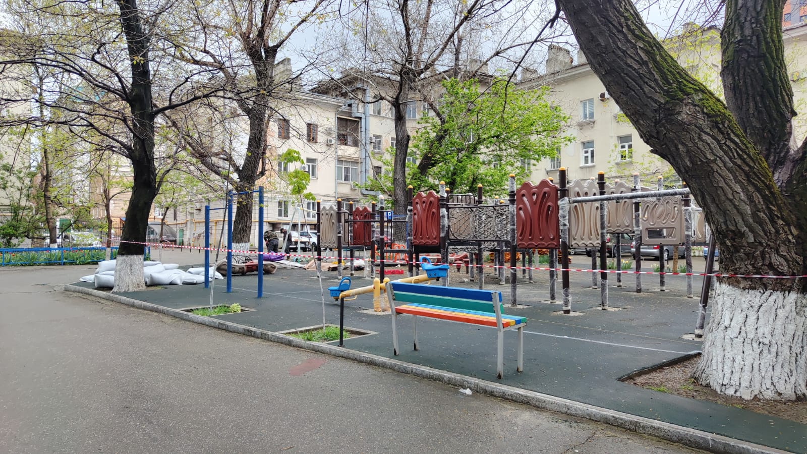 Во дворах Новороссийска восстанавливают площадку, которую демонтировали после съемок «Ненормального»