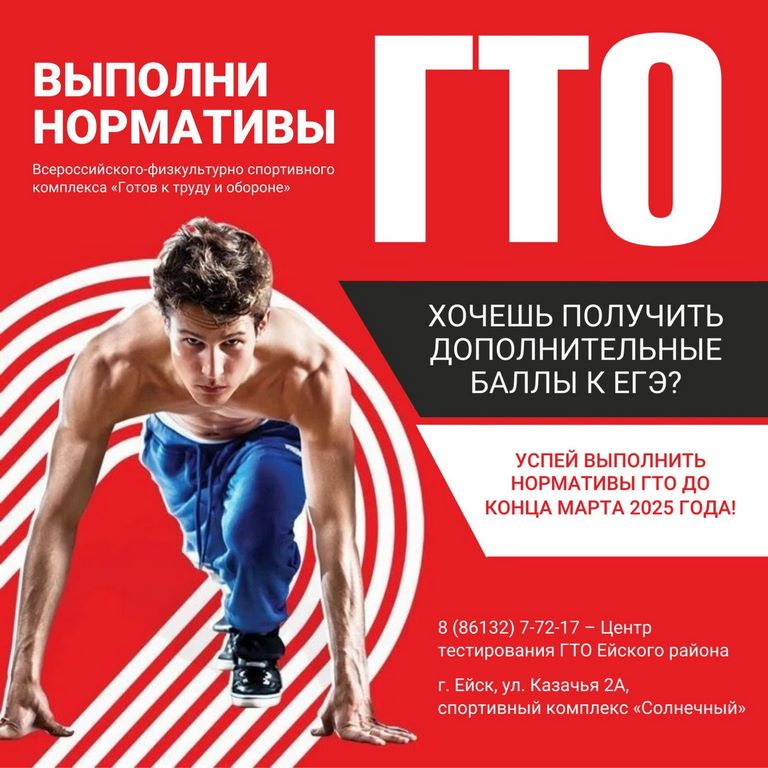 Выполни нормативы ГТО и получи дополнительные баллы при поступлении!