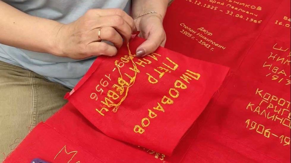 Такое количество данных прислали жители в этом году. Сейчас волонтёры, учащиеся образовательных учреждений и жители краевого центра завершают процесс вышивки лоскутов. Они наносят золотыми нитками имена героев на красную ткань. После чего начнётся процесс сшивания единого полотна.