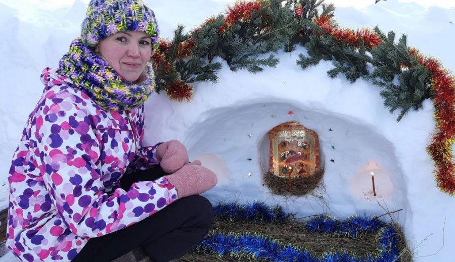 Вертеп из снега делала сотрудница нашей редакции Алена Остапова. На ее родине в Коми невероятно снежные зимы. Этот вертеп несколько месяцев украшал двор церкви Святой Троицы в селе Ёртом.