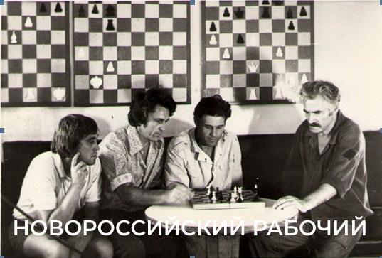 Команда т/х «Пхеньян» за анализом партии: матрос В. Новиков, электромеханик Л. Зелёный, боцман П. Павлюк, старший машинист В. Костюченко. Фотографии из личного архива Леонида Зелёного.Противостояние новороссийских и одесских моряков началось в далекие 60-е годы прошлого века, когда в наш город из Одессы перевели танкерное отделение Черноморского морского пароходства, которое в 1976 году и стало самостоятельным предприятиям – Новороссийским морским пароходством. Одесситы ревниво относились к любым успехам бывшего филиала, и негласная борьба за первенство шла не только в труде, но даже в шахматах.