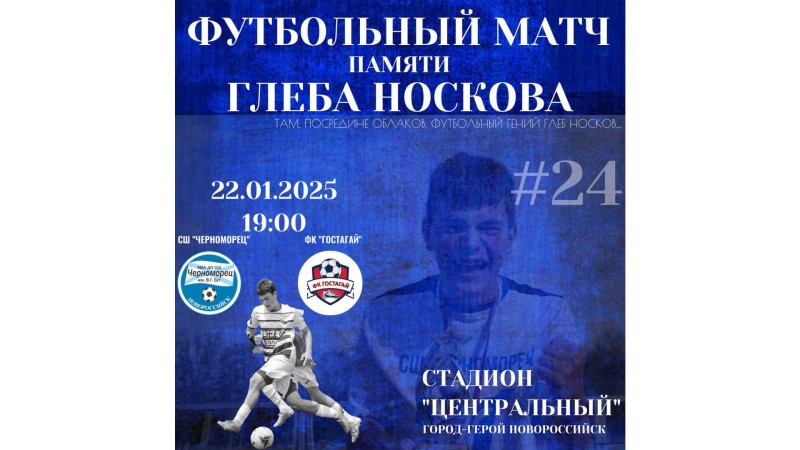 22 января на главной спортивной арене города-героя Новороссийска состоится футбольный матч, посвященный памяти Глеба Носкова.