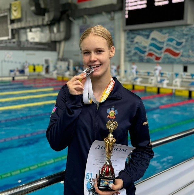 На дистанции 50 метров вольным стилем Полина Холопова проявила весь свой характер. Ей не хватило 0,3 секунды – ровно на столько отделяет результат нашей спортсменки от первого места. В итоге — серебряная медаль спартакиады и подтверждение звания Кандидата в мастера спорта по плаванию.
