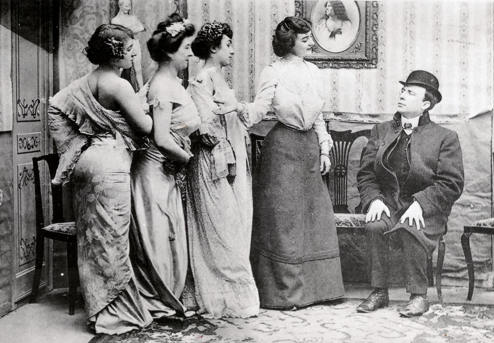 Заглянем в такой дом с помощью историка, изучившего документы в архиве. Публичный дом имел общий зал, столовую, комнату для хозяйки или экономки и по комнате для каждой проститутки. Комнаты для женщин легкого поведения были различны, не более двух сажень куб. объема. Если же в комнате не было окна, то перегородка не должна была достигать потолка. Во всем помещении необходимы были четыре вентилятора, два выхода, полы должны были быть окрашены, стены оклеены обоями.