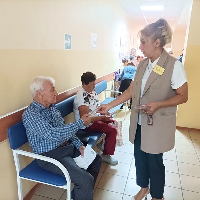 7 сентября 2023 года специалисты Тихорецкого межрайонного филиала провели встречу с пациентами центральной районной поликлиники ГБУЗ "Крыловская ЦРБ" М3 КК во время акции "Кубань - край долгожителей",